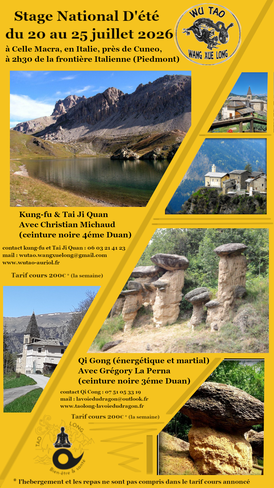 En partenariat avec "Wu Tao Wang Xue Long" du 20 au 25 juillet 2026 se déroulera un stage d'été en Kung-fu, Tai Ji (Chen) et Qi Gong